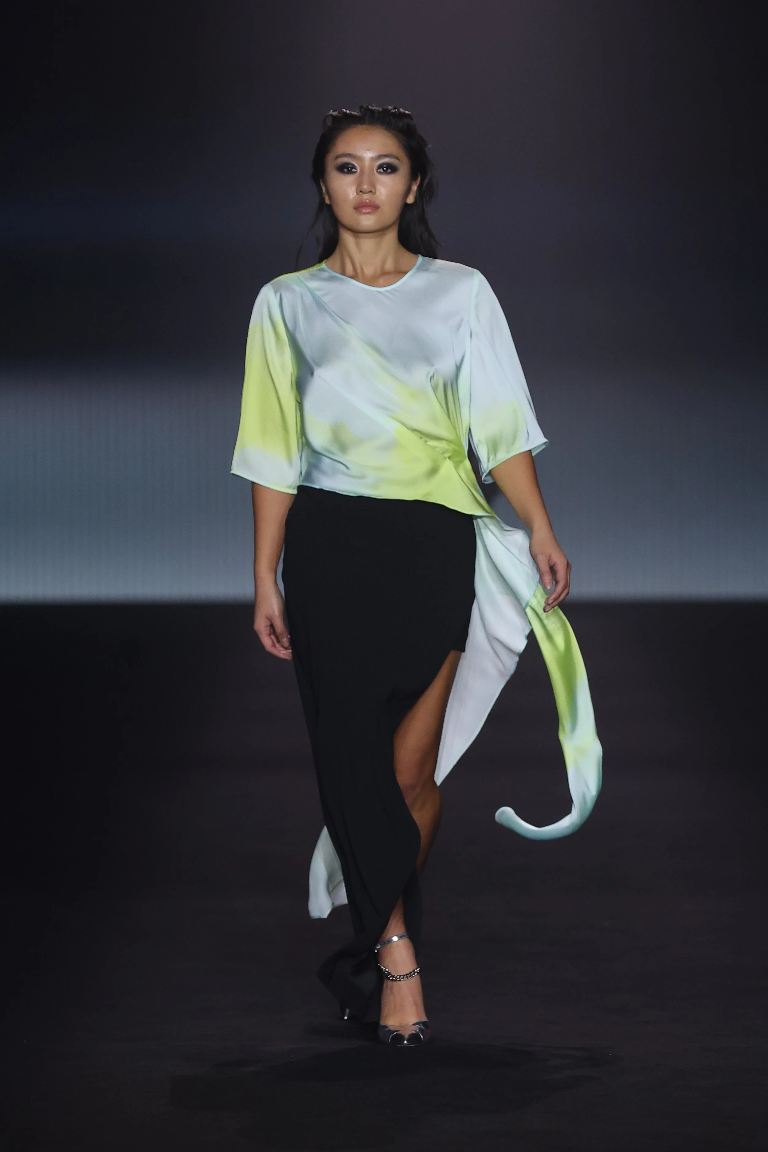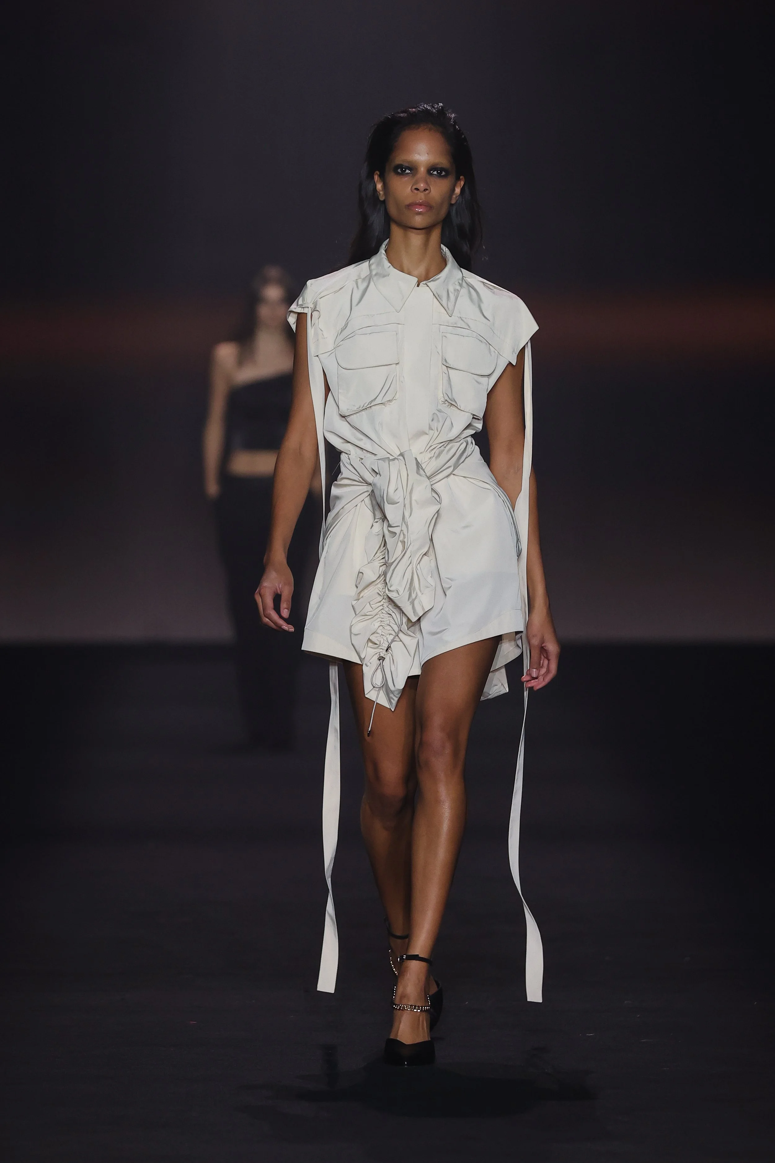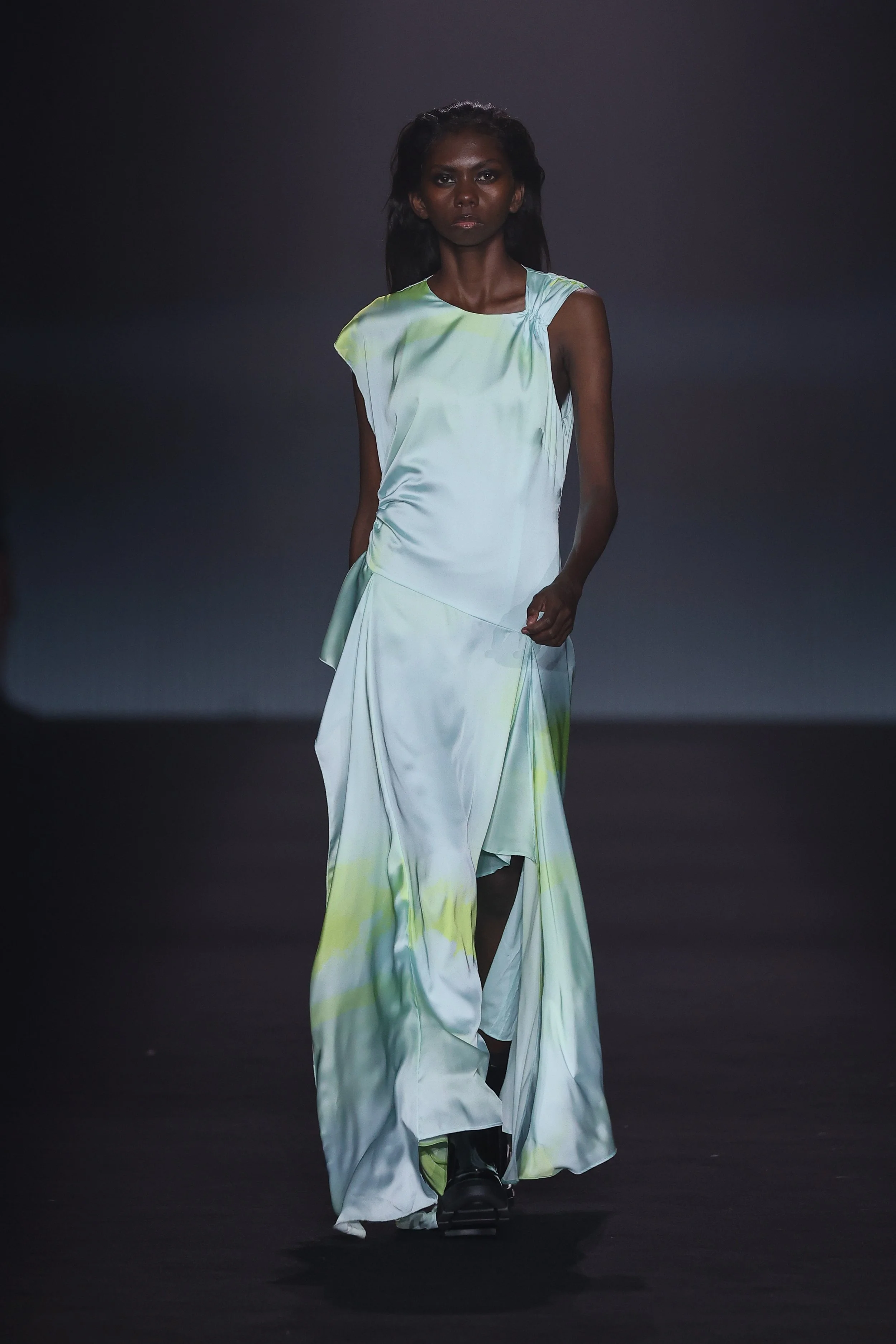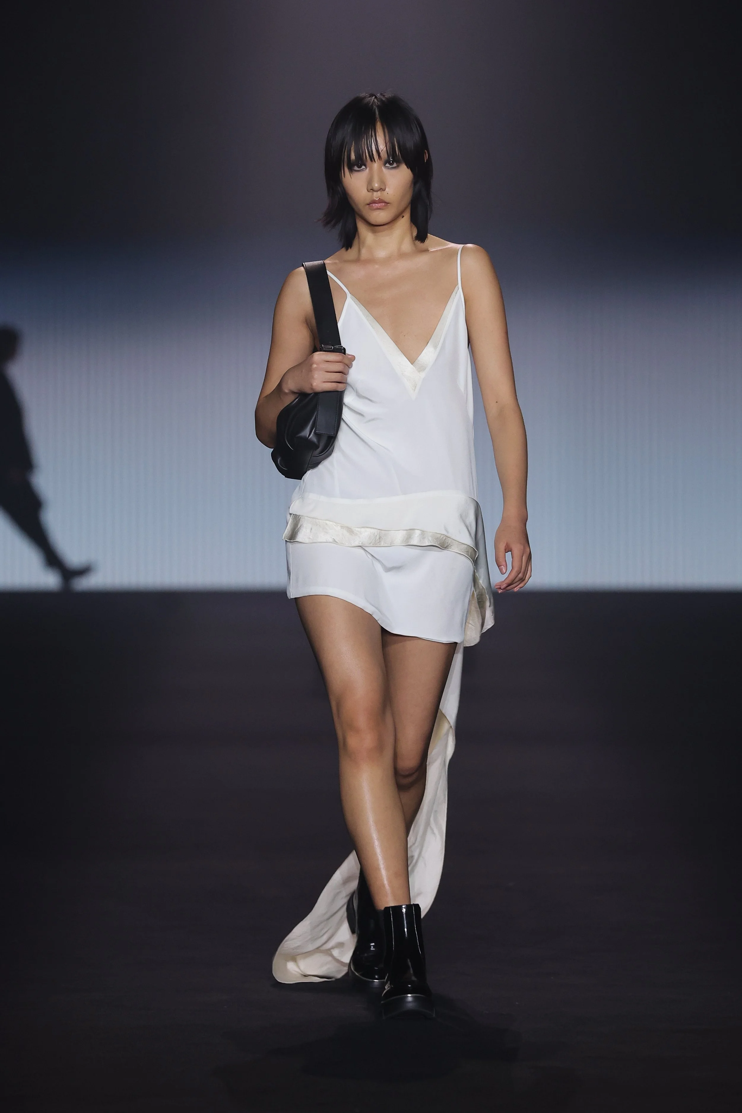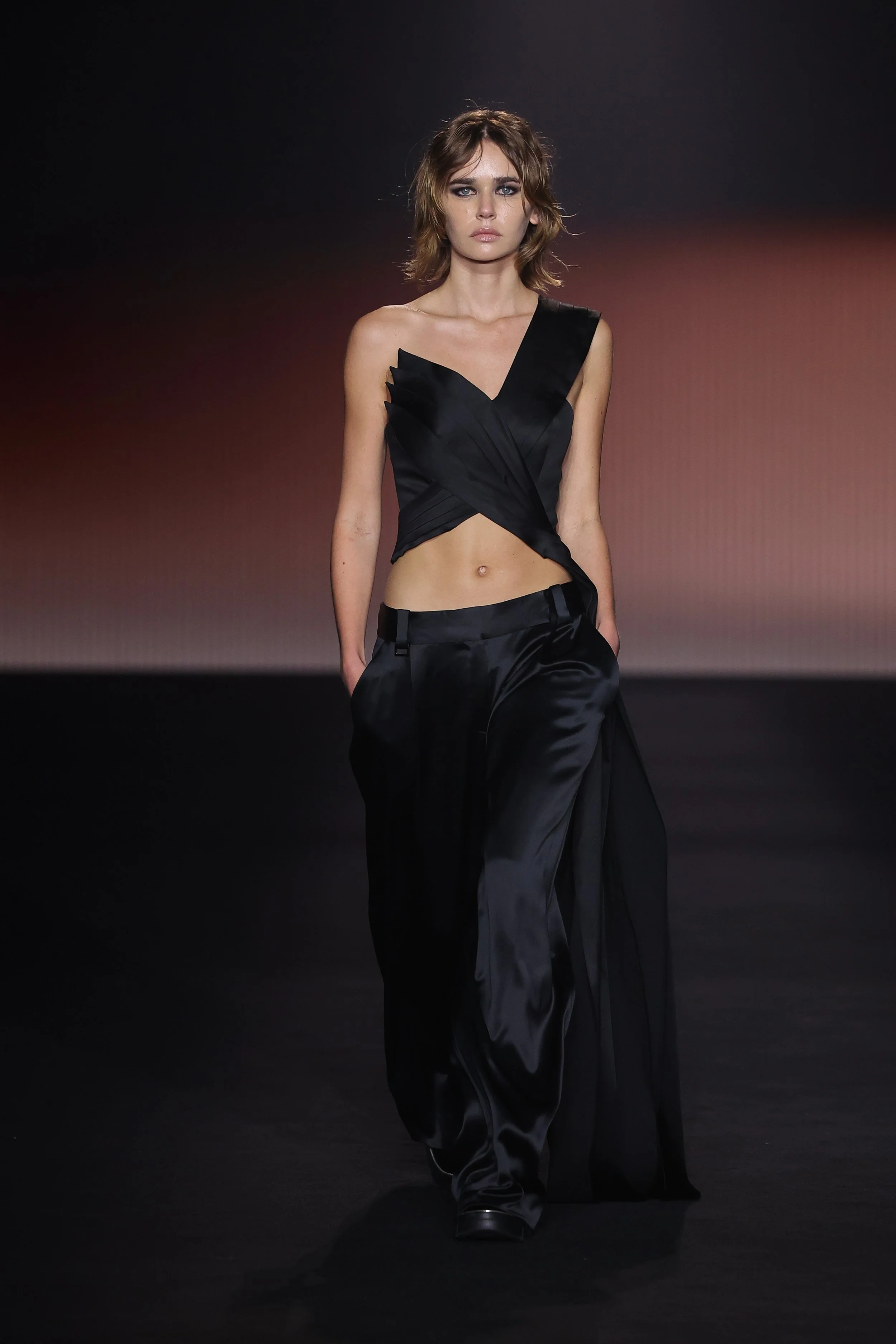 Show 01 prefaces a new evolution of Cue with cool indifference to traditional dress codes. Tailoring is relaxed and designed to fall off the body. Microscopic minis push the limits with attitude, while silk styles float through the collection.