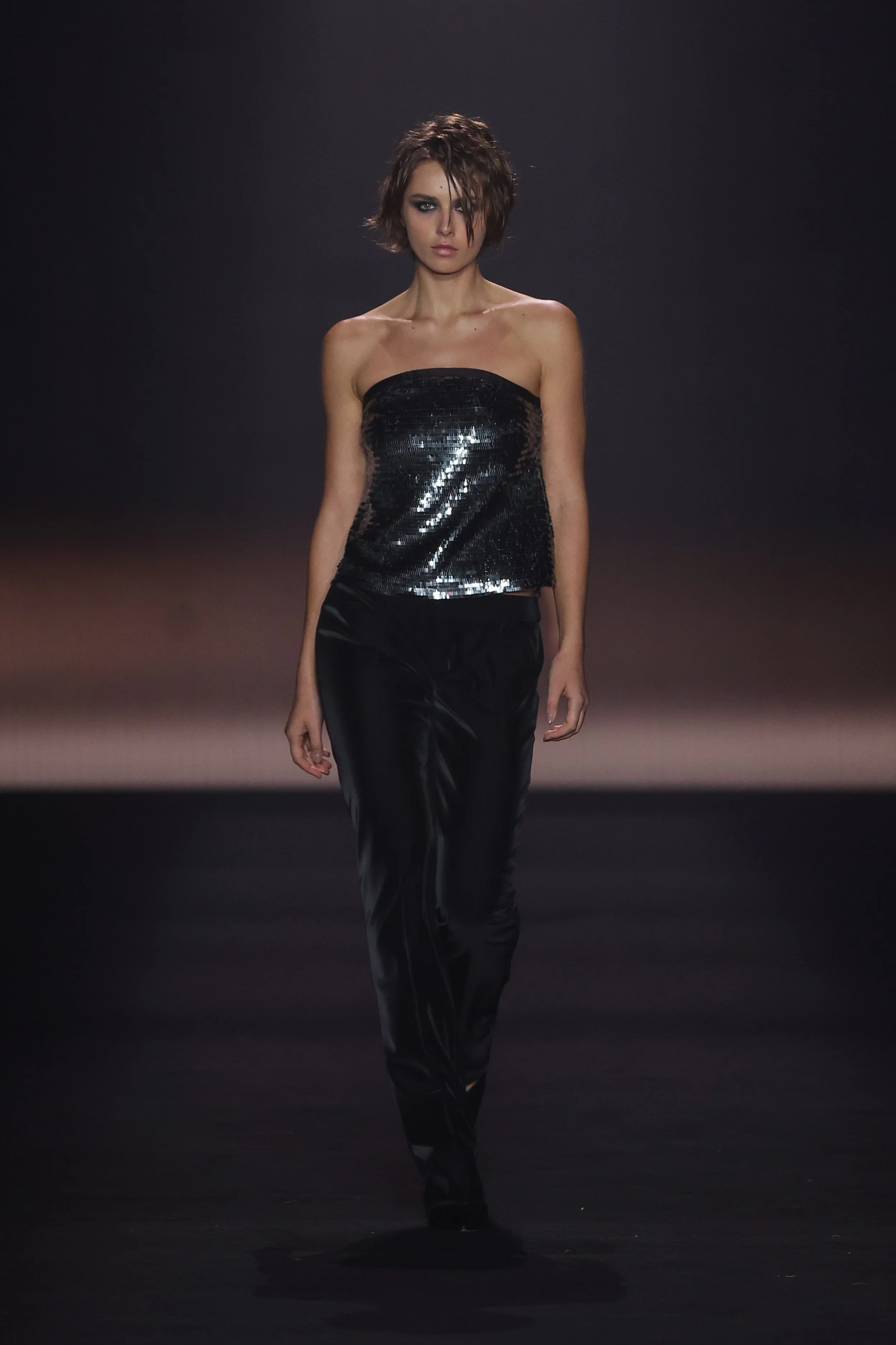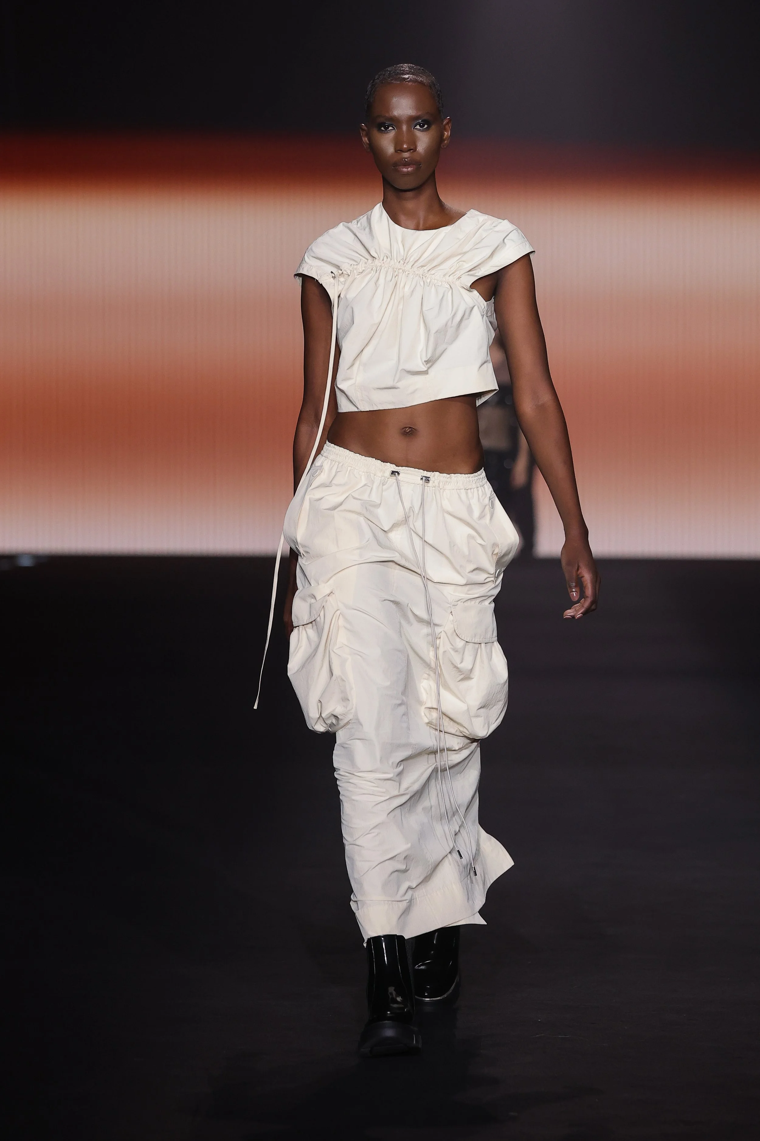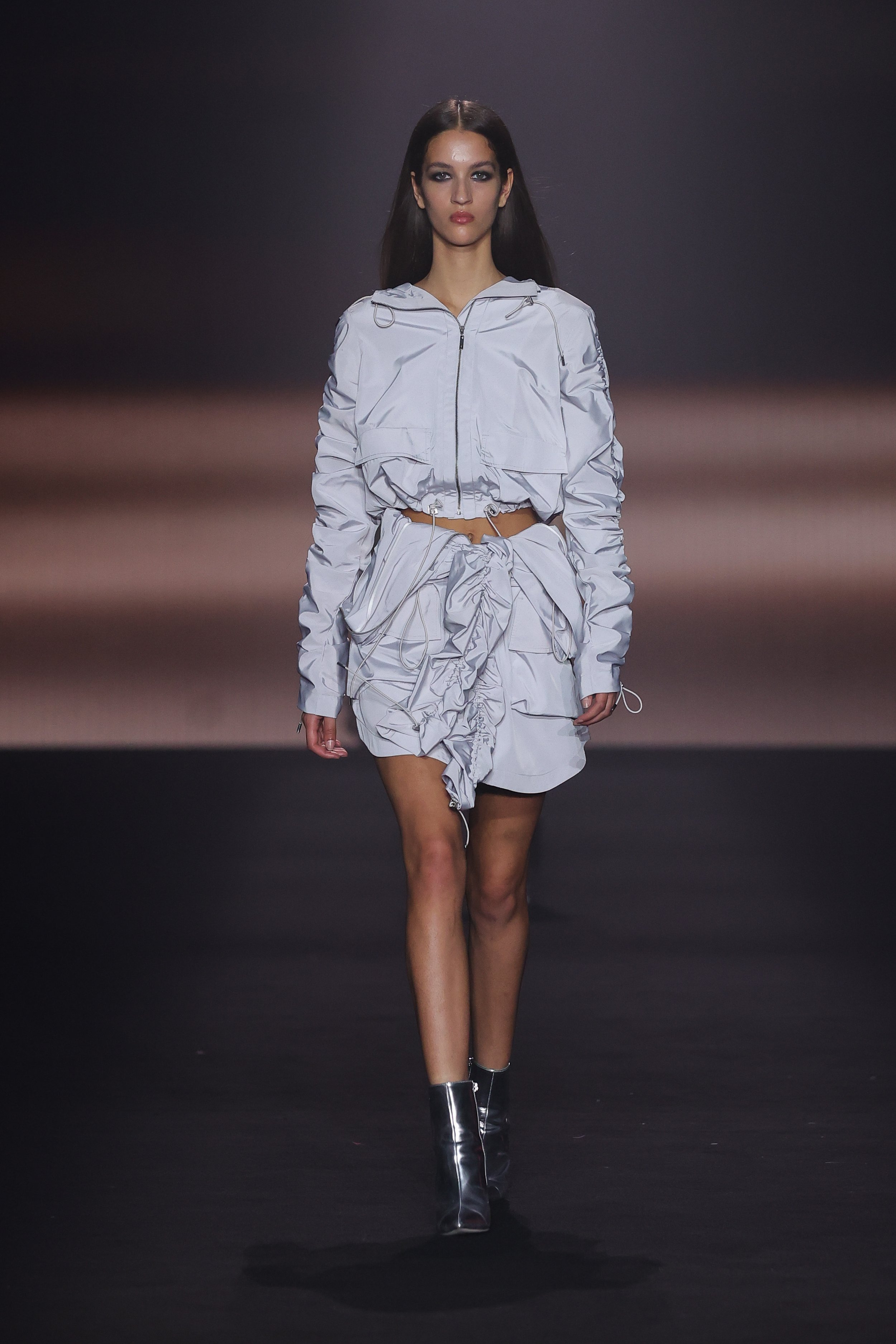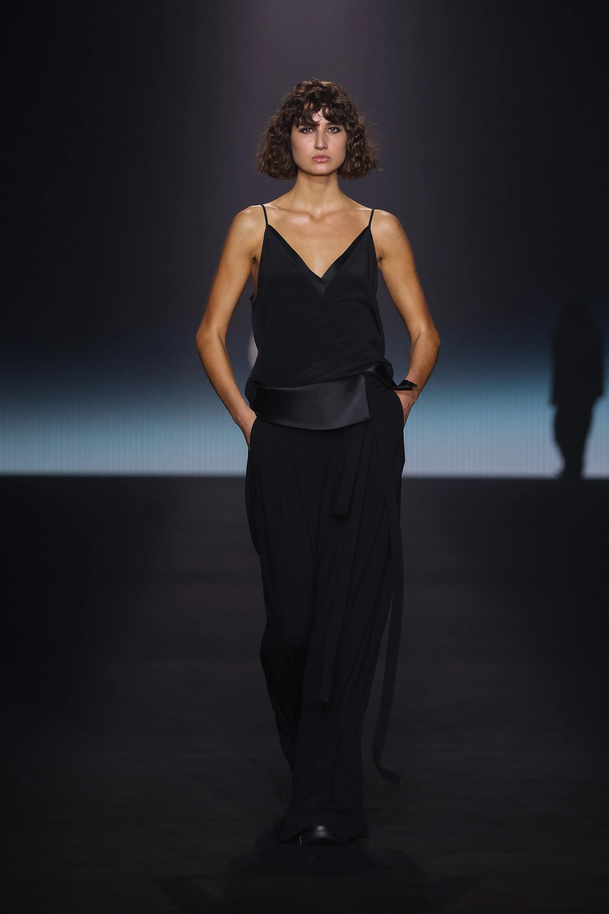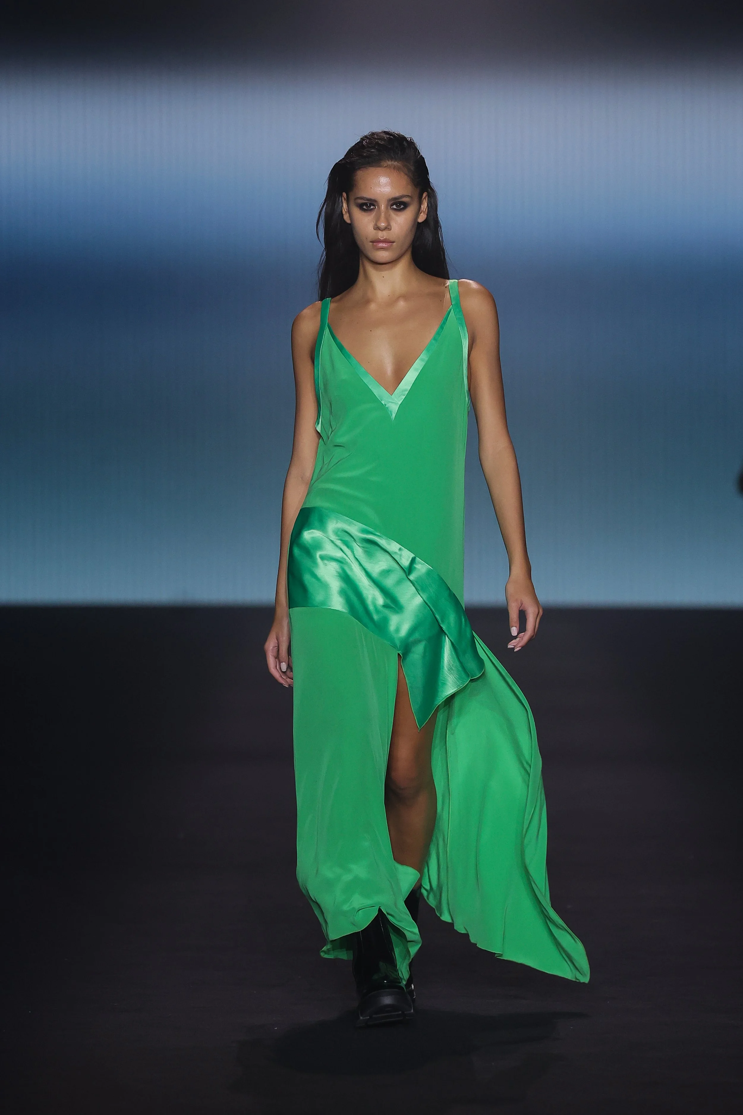 Show 01 prefaces a new evolution of Cue with cool indifference to traditional dress codes. Tailoring is relaxed and designed to fall off the body. Microscopic minis push the limits with attitude, while silk styles float through the collection.