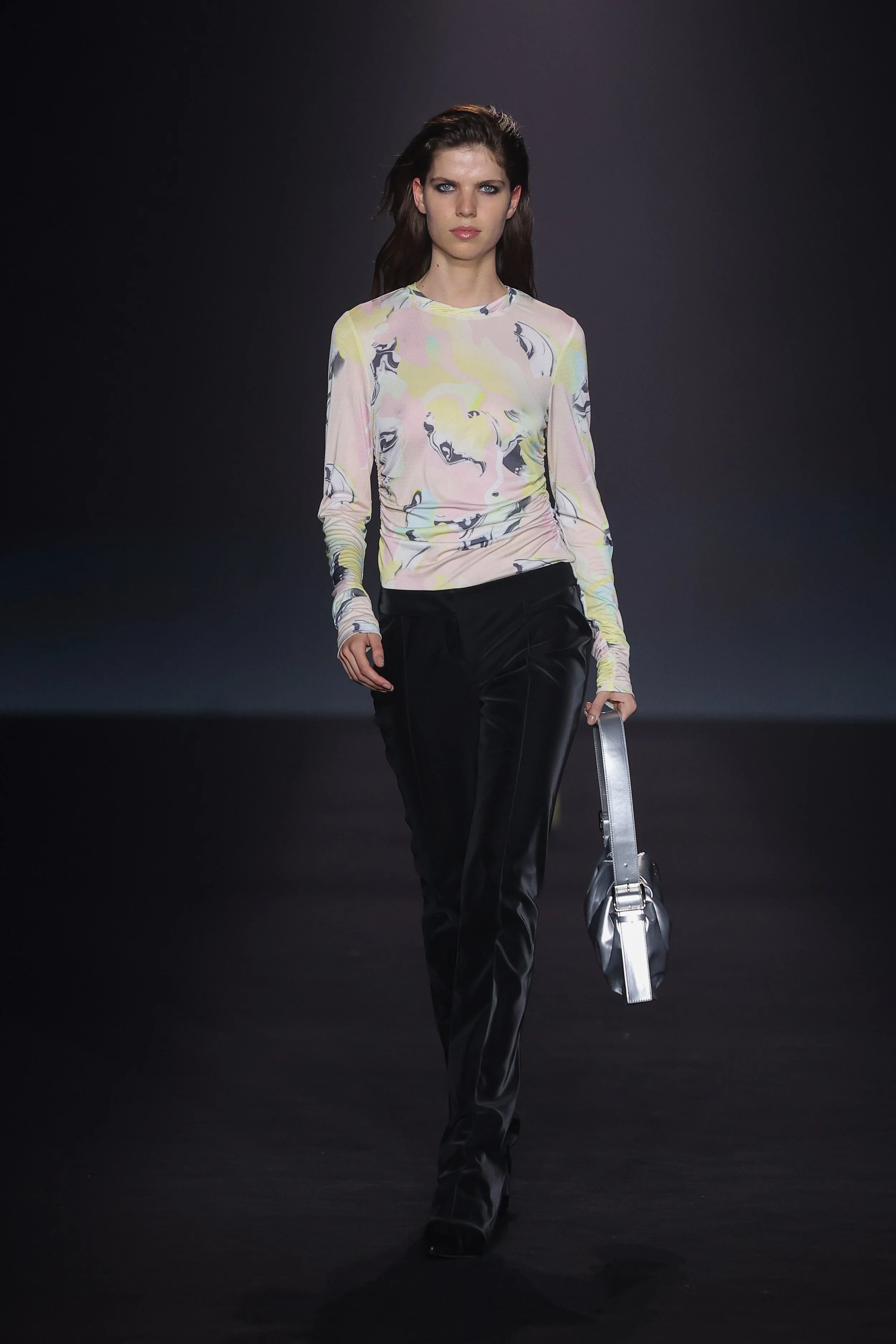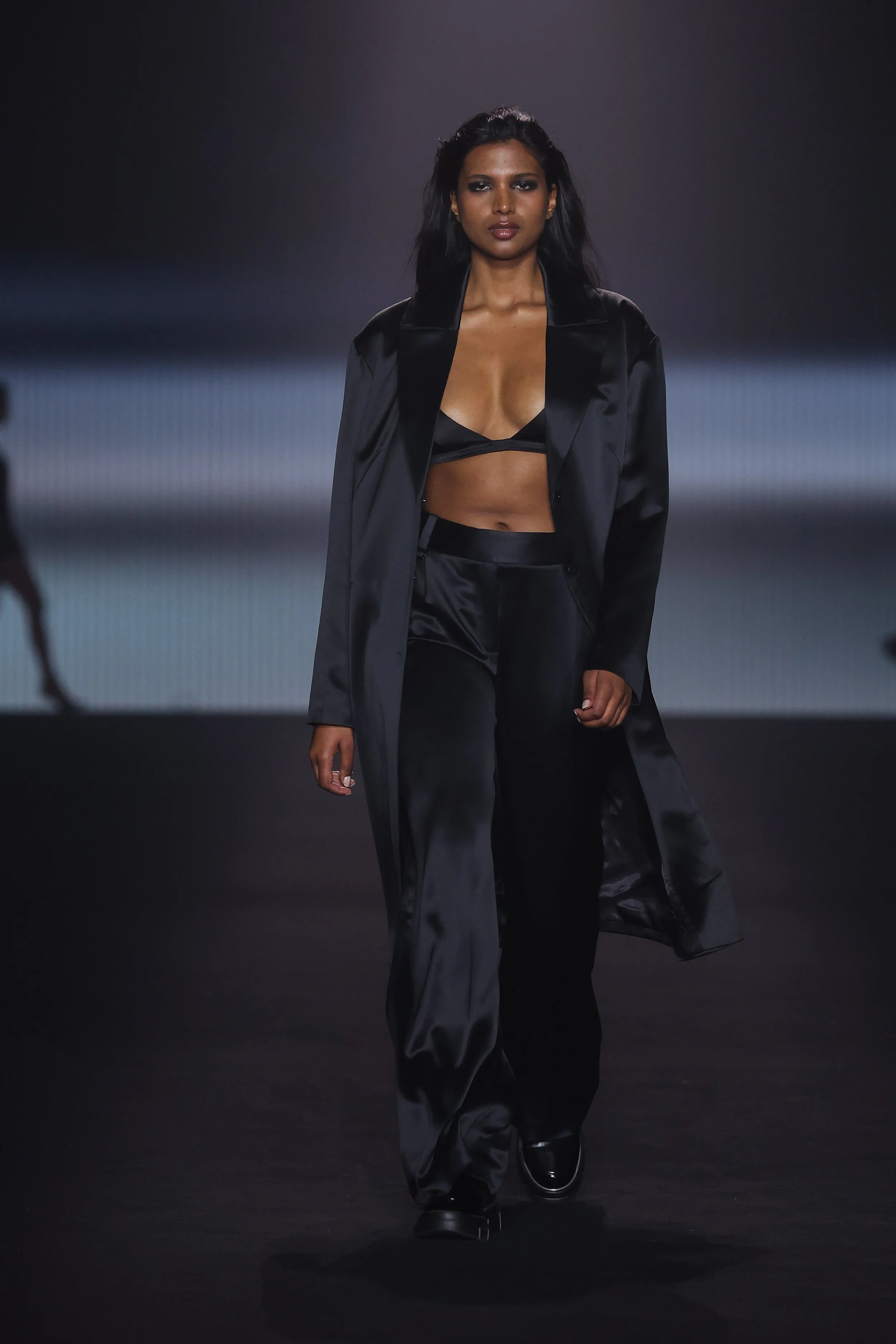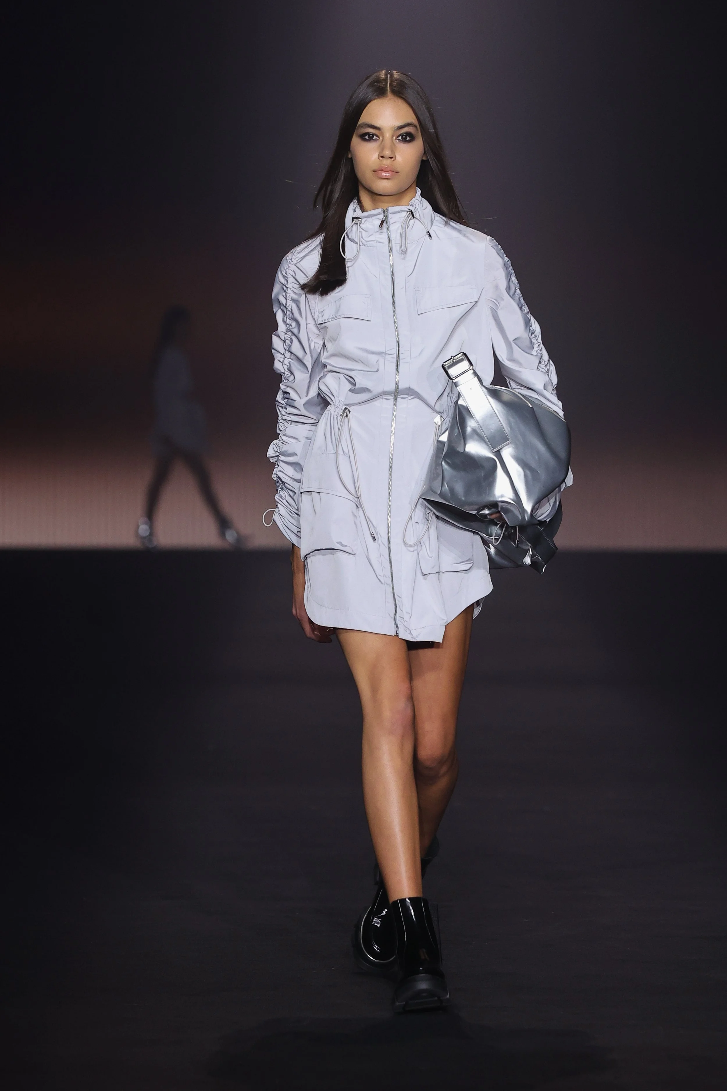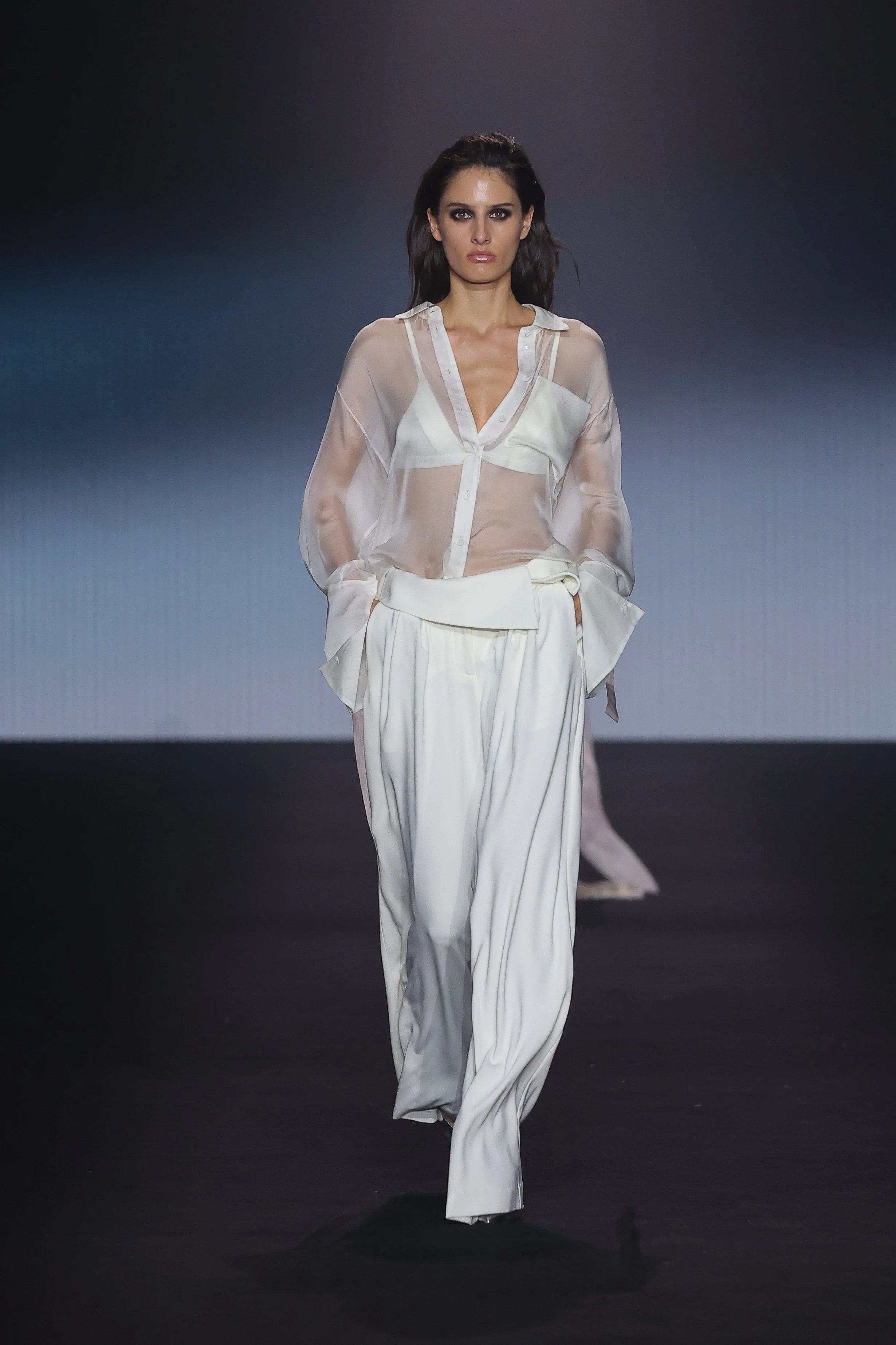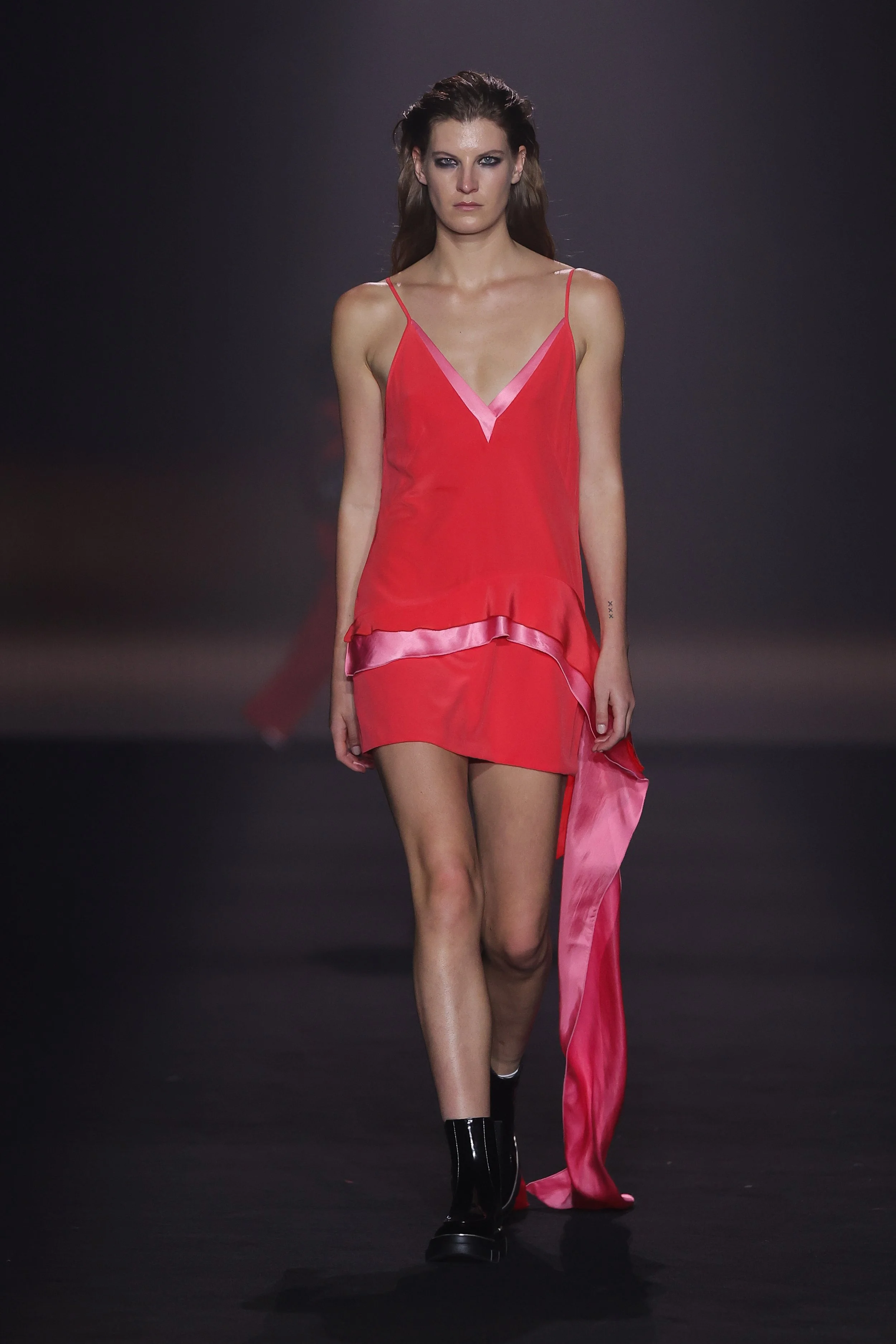 Show 01 prefaces a new evolution of Cue with cool indifference to traditional dress codes. Tailoring is relaxed and designed to fall off the body. Microscopic minis push the limits with attitude, while silk styles float through the collection.