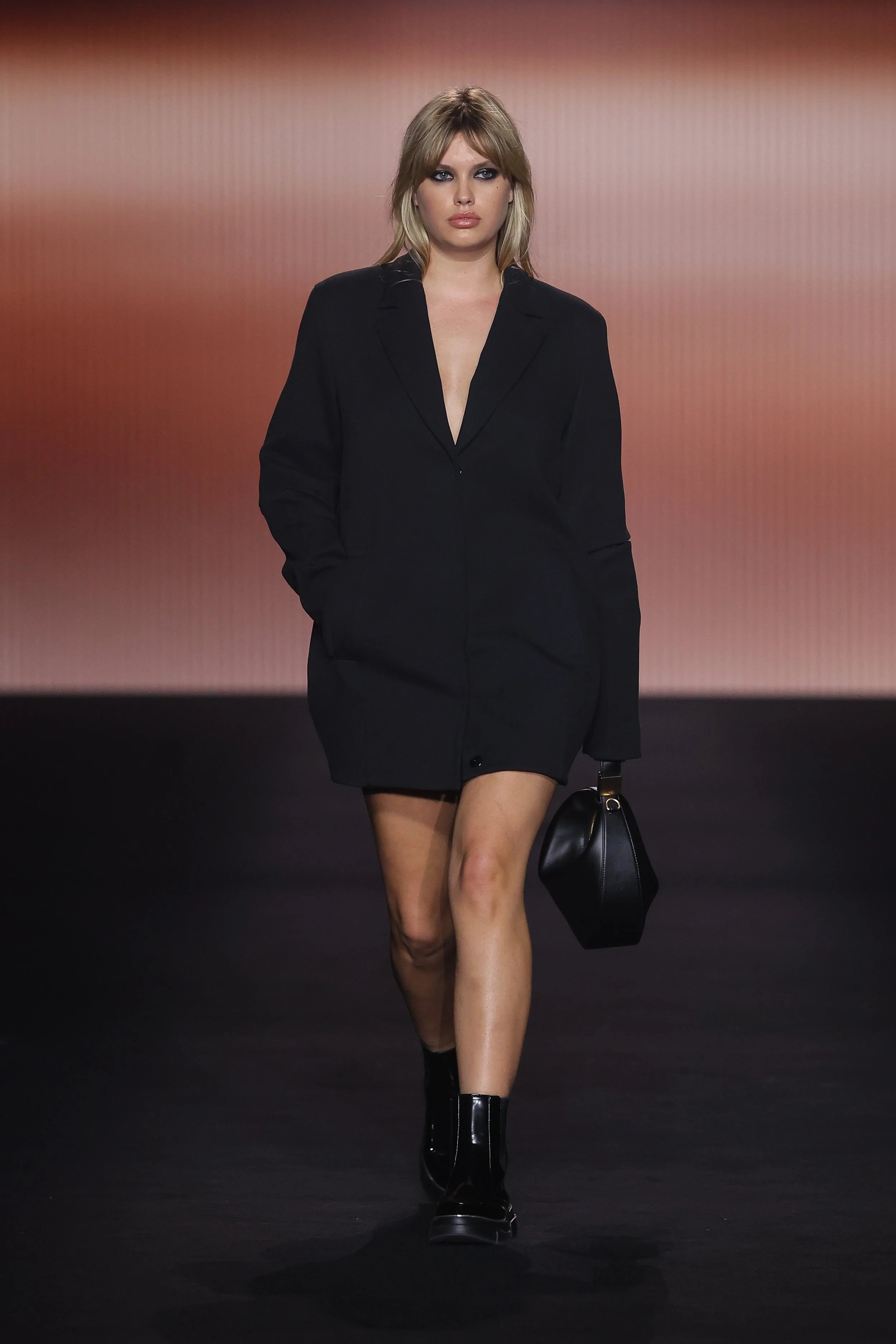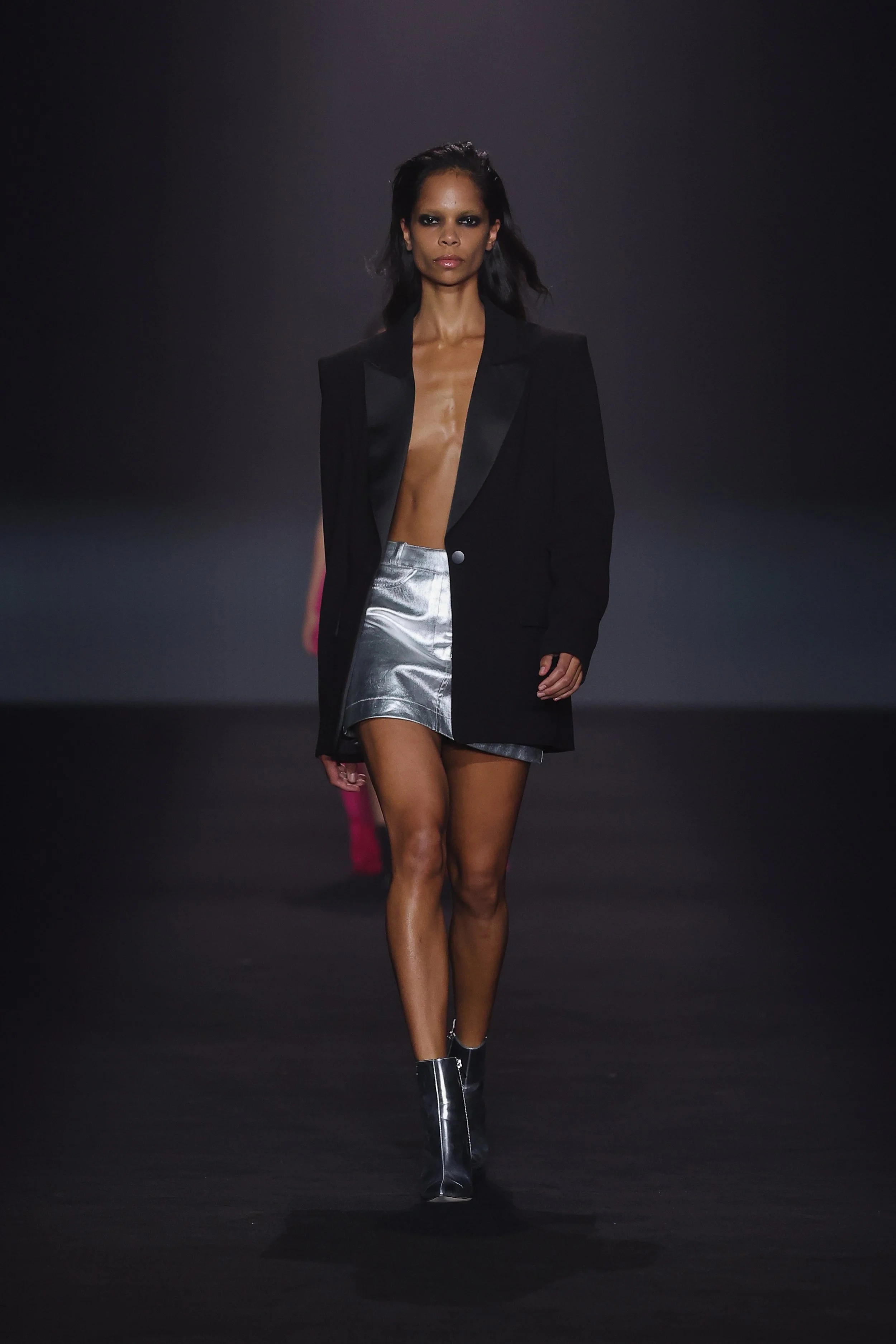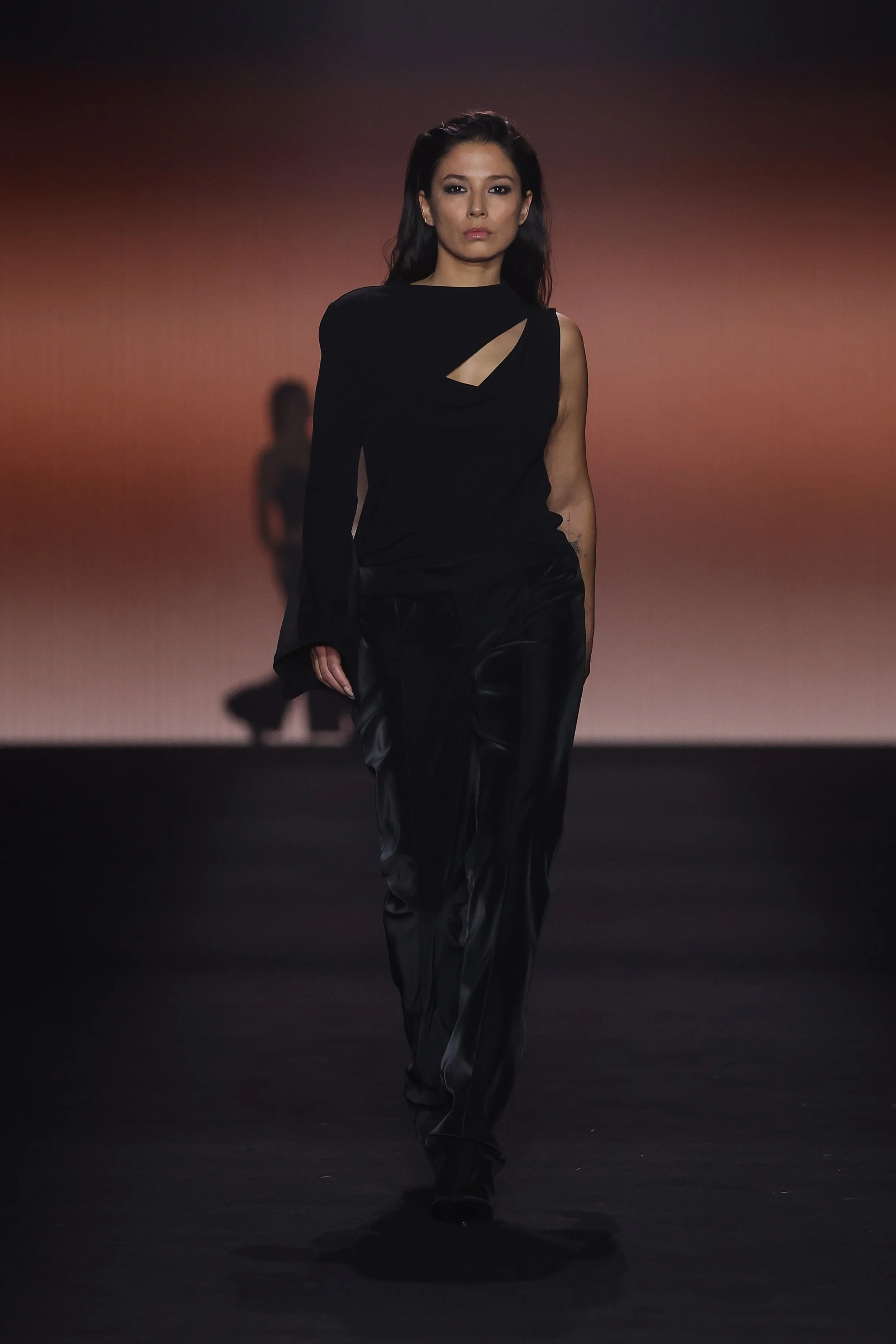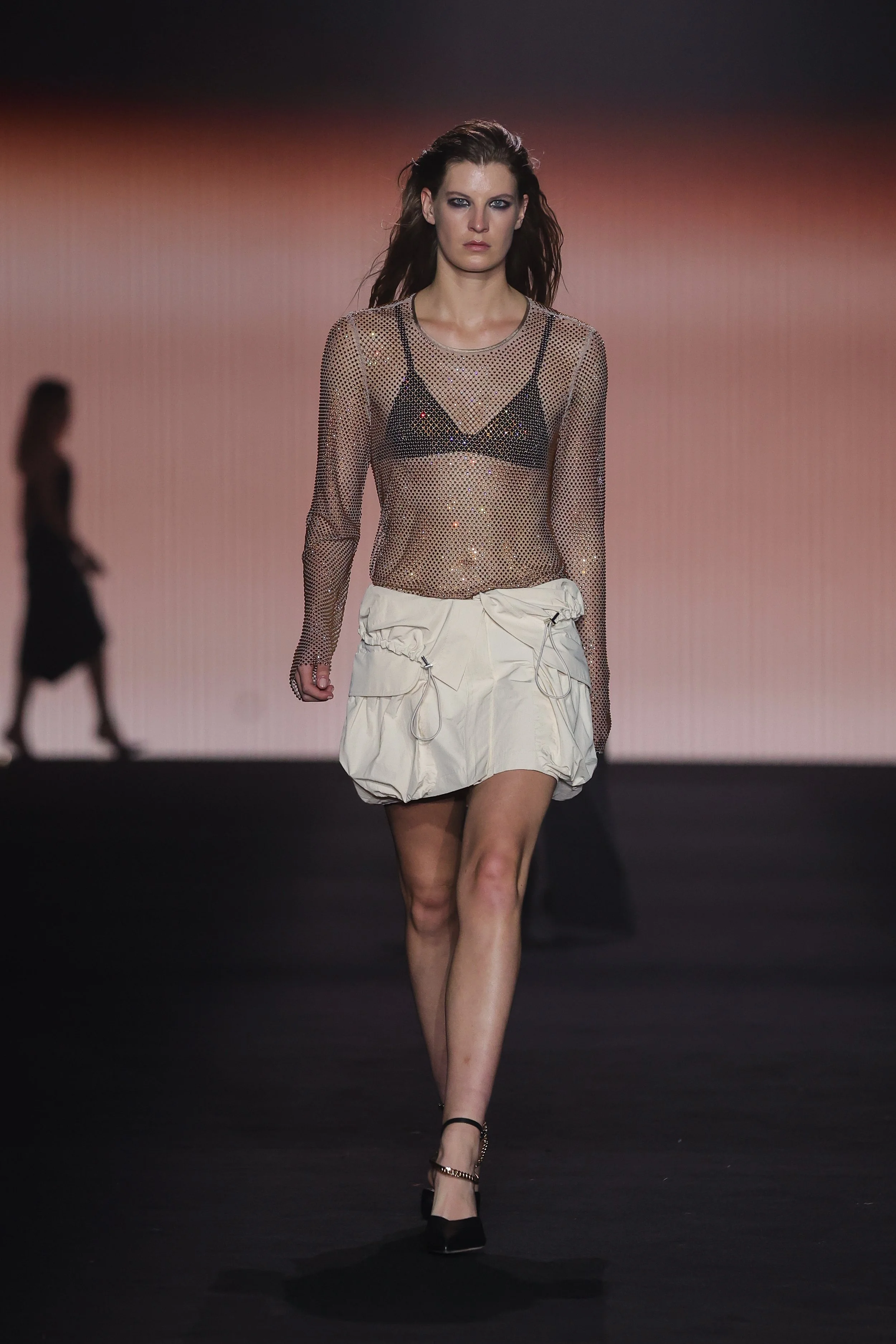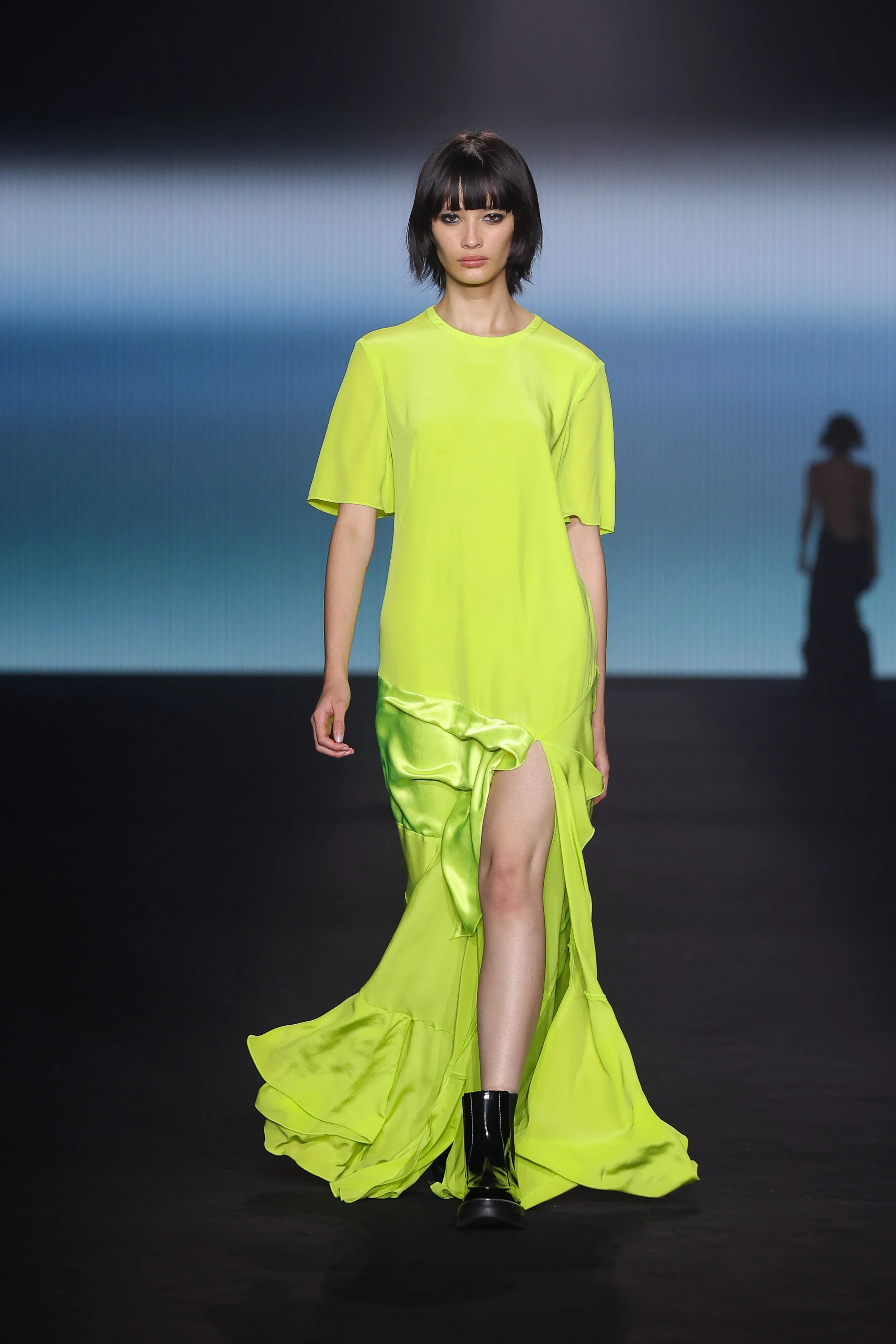 Show 01 prefaces a new evolution of Cue with cool indifference to traditional dress codes. Tailoring is relaxed and designed to fall off the body. Microscopic minis push the limits with attitude, while silk styles float through the collection.