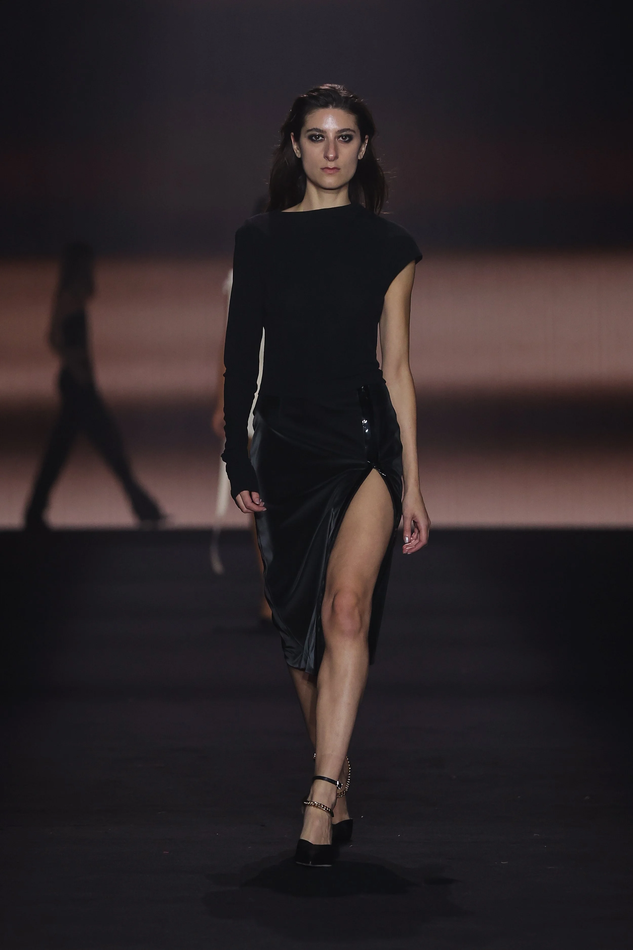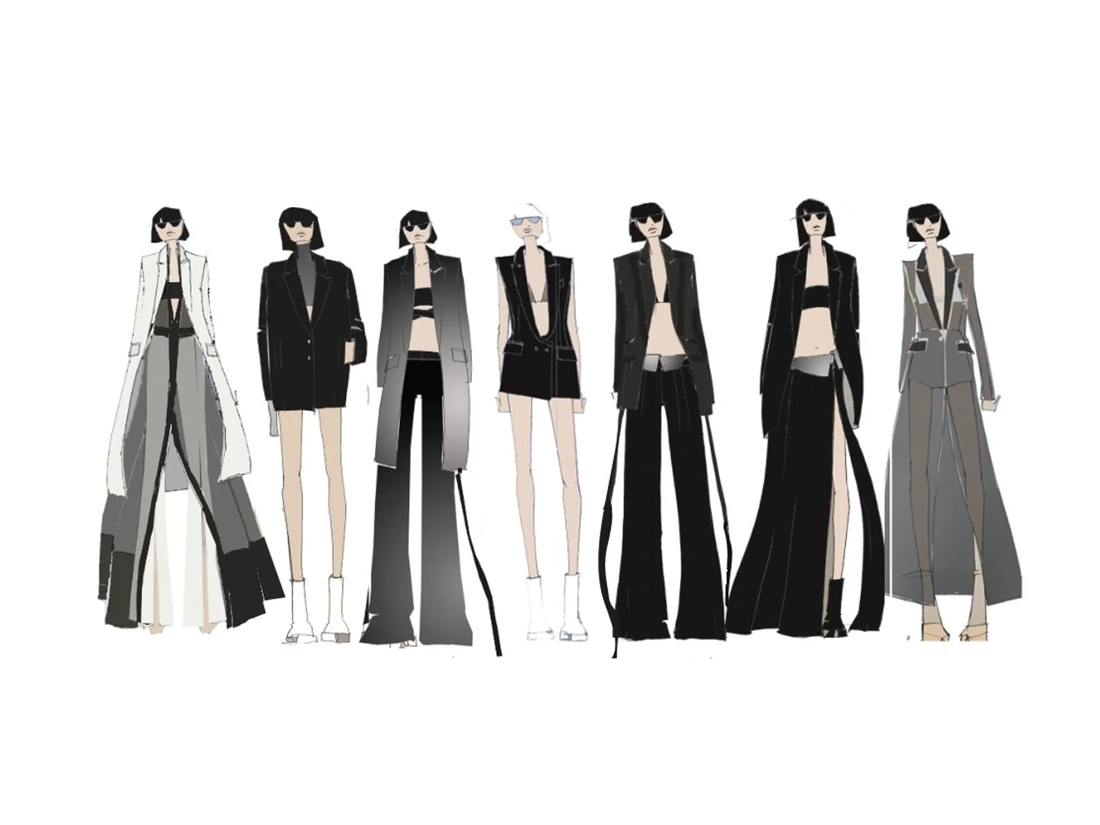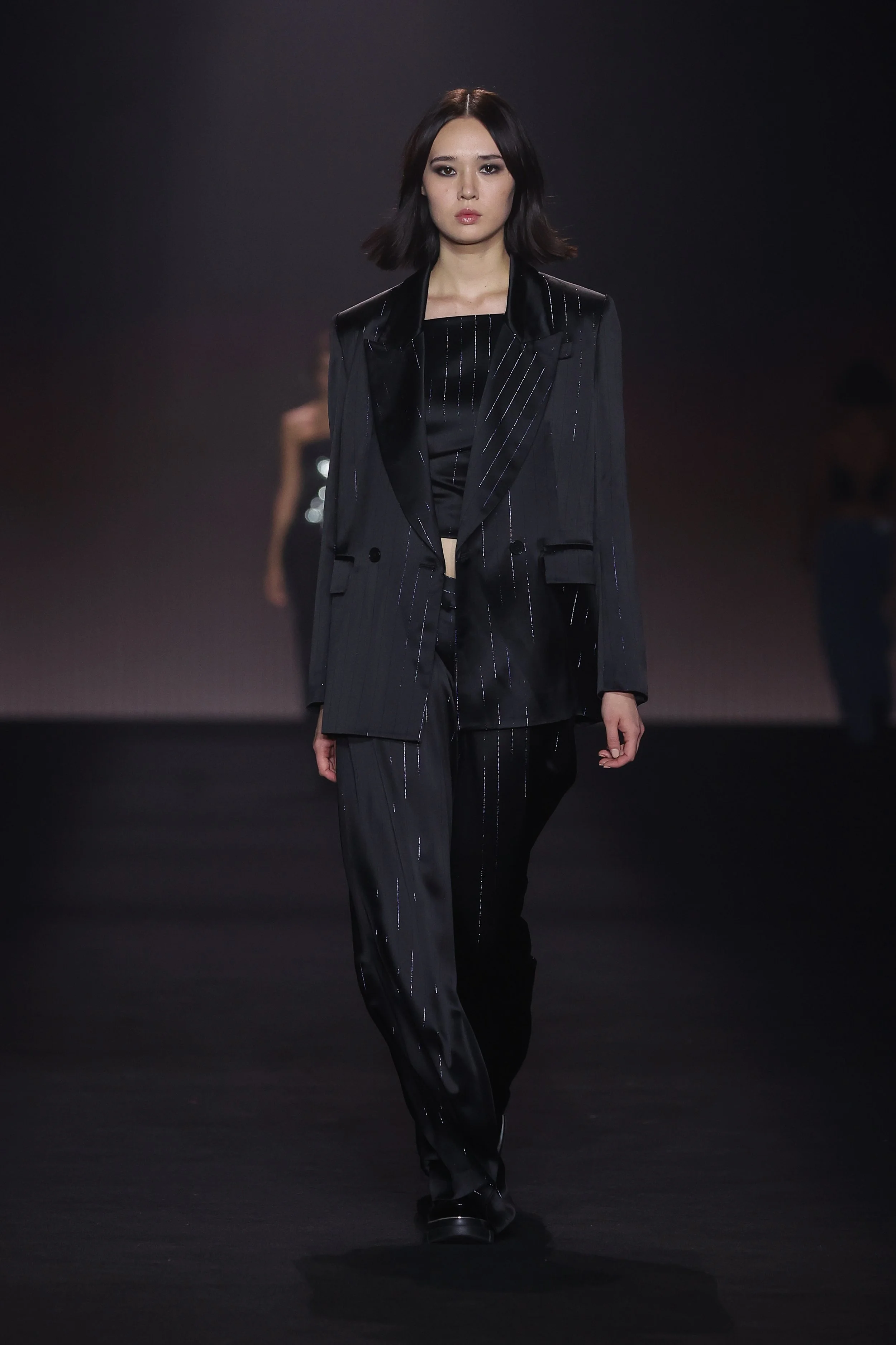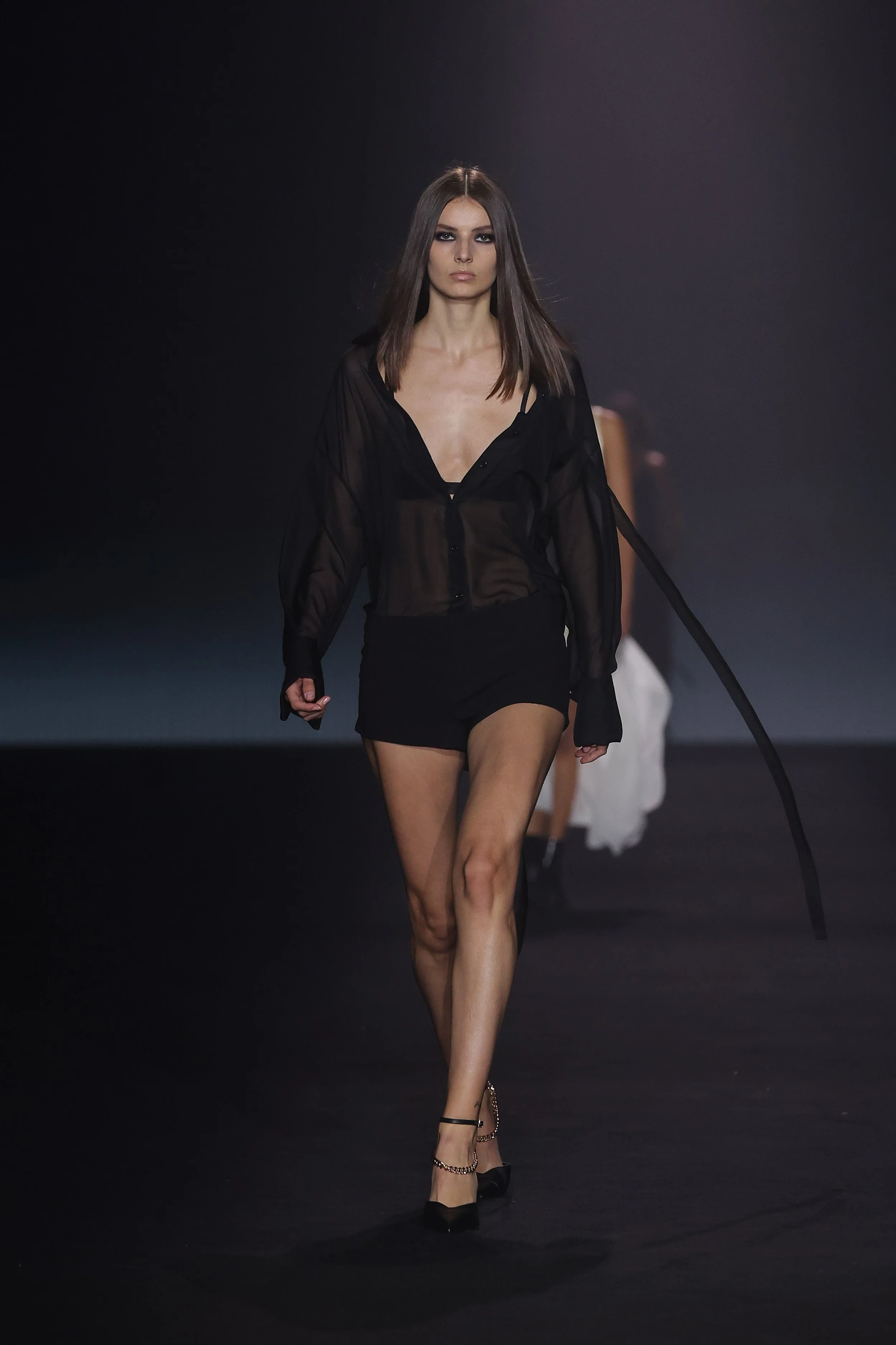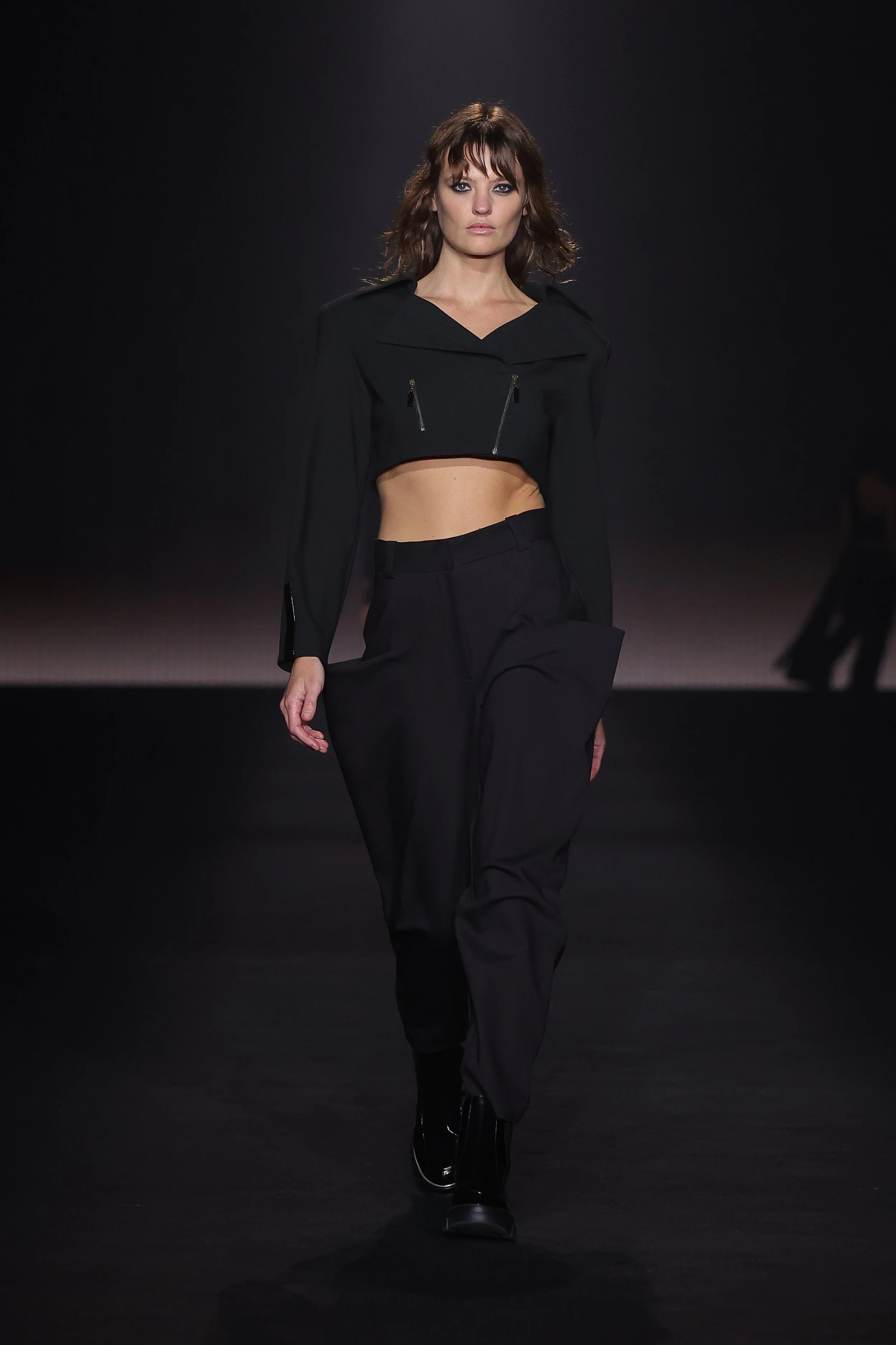 Show 01 prefaces a new evolution of Cue with cool indifference to traditional dress codes. Tailoring is relaxed and designed to fall off the body. Microscopic minis push the limits with attitude, while silk styles float through the collection.