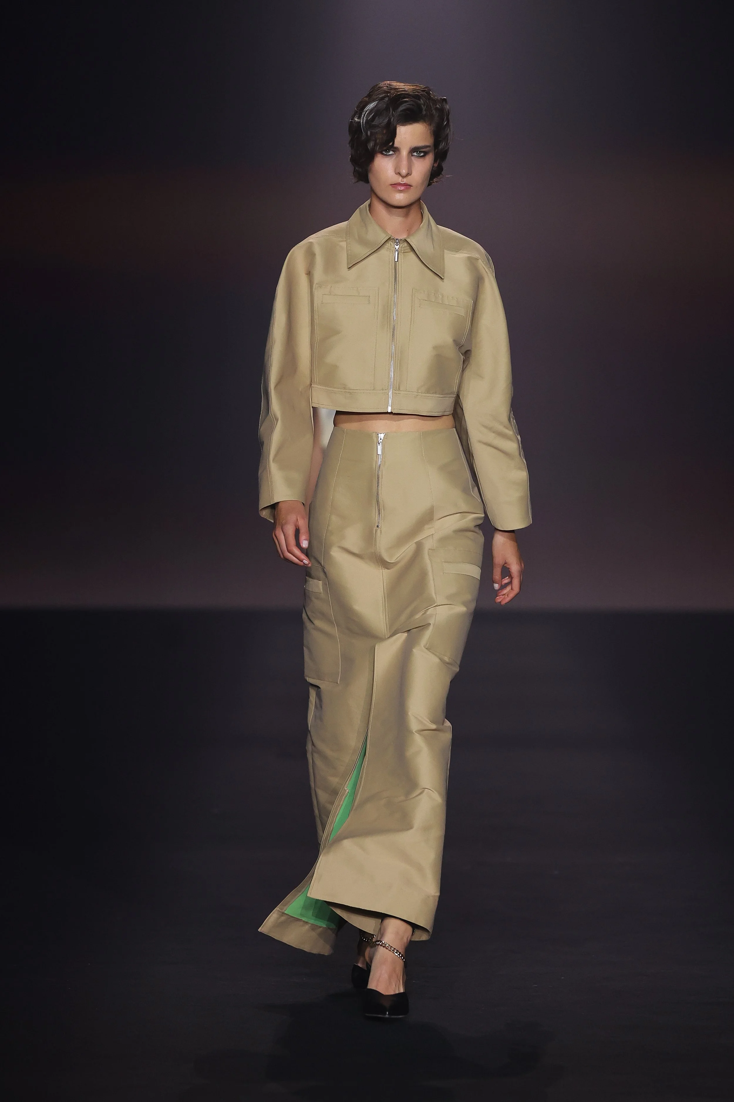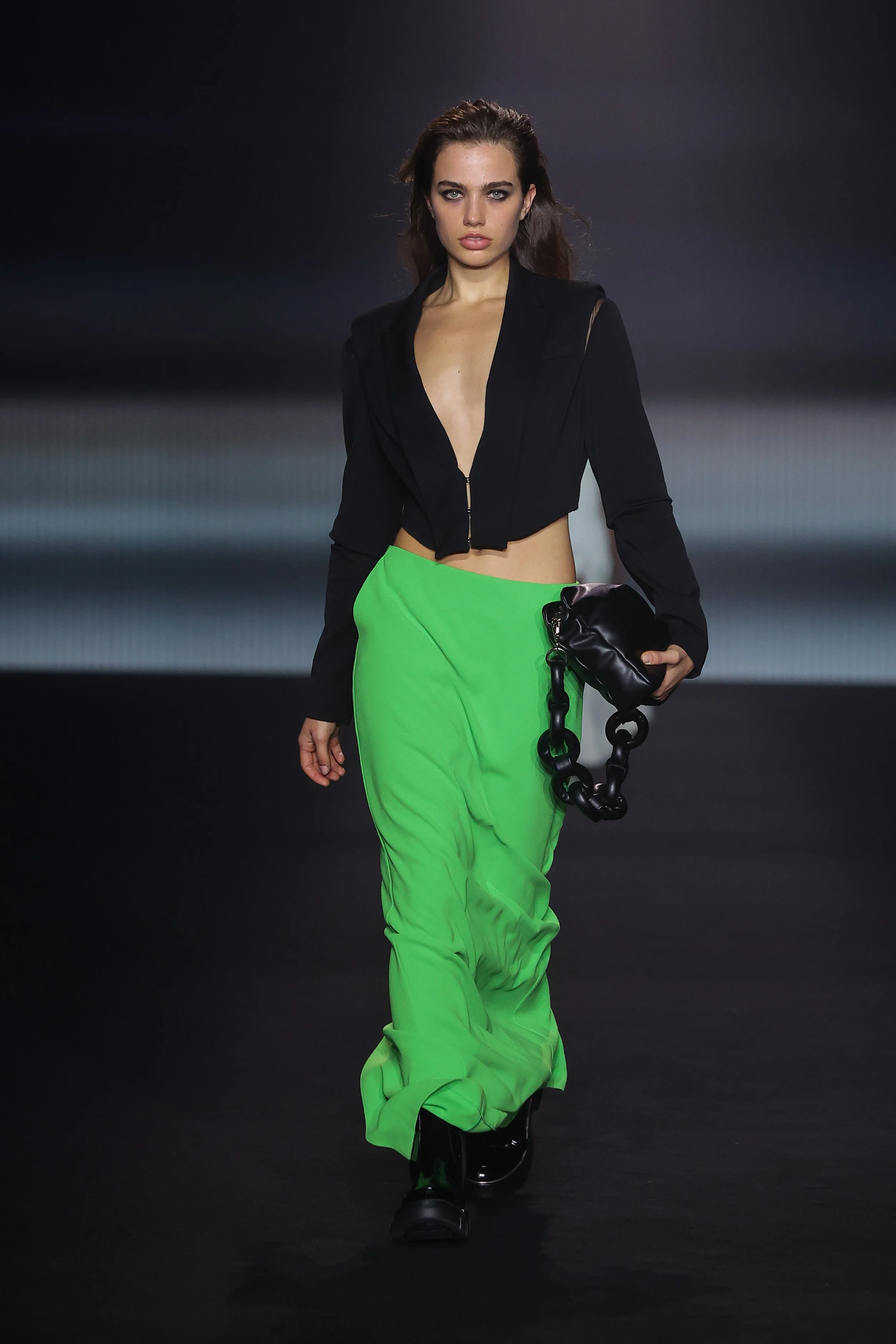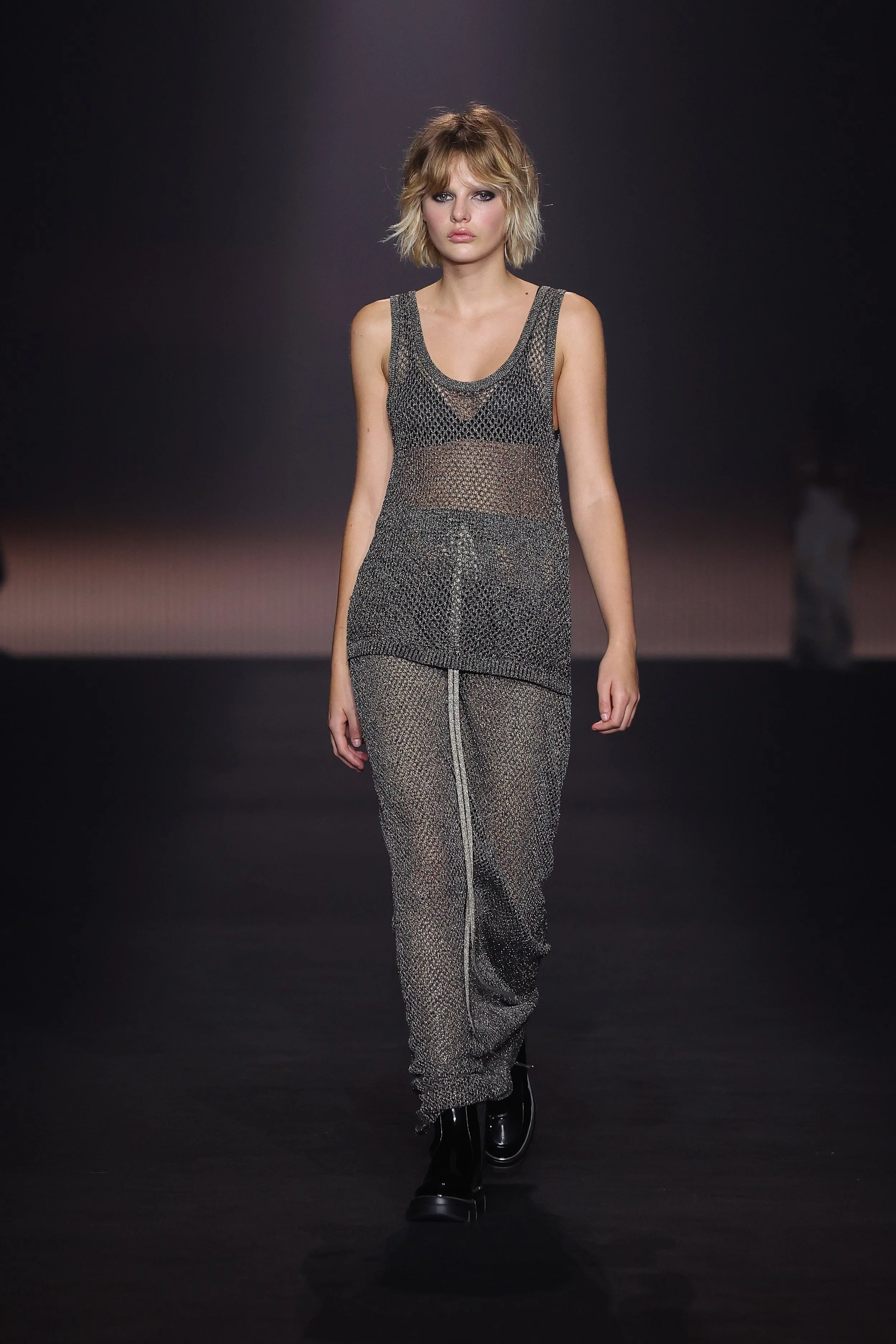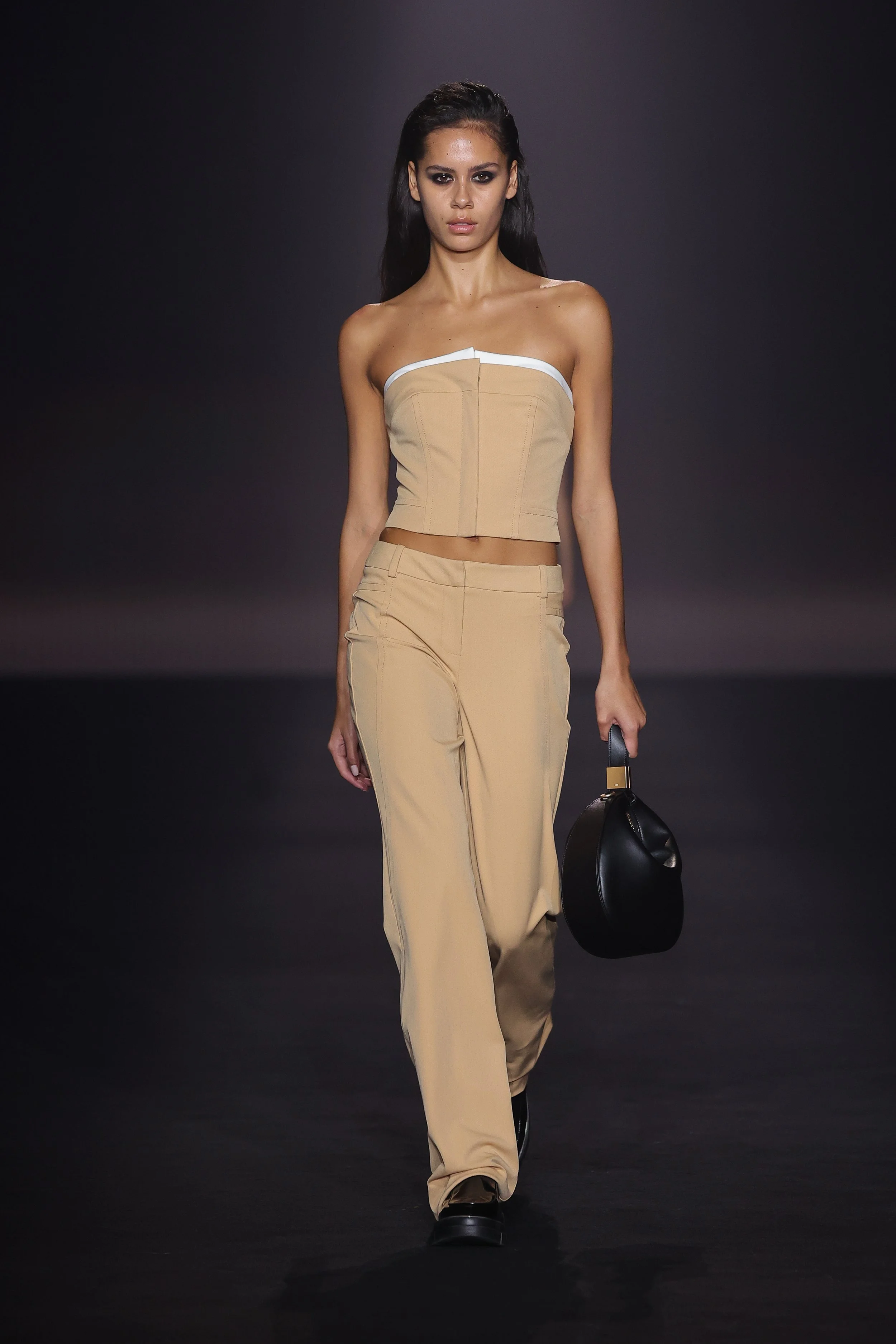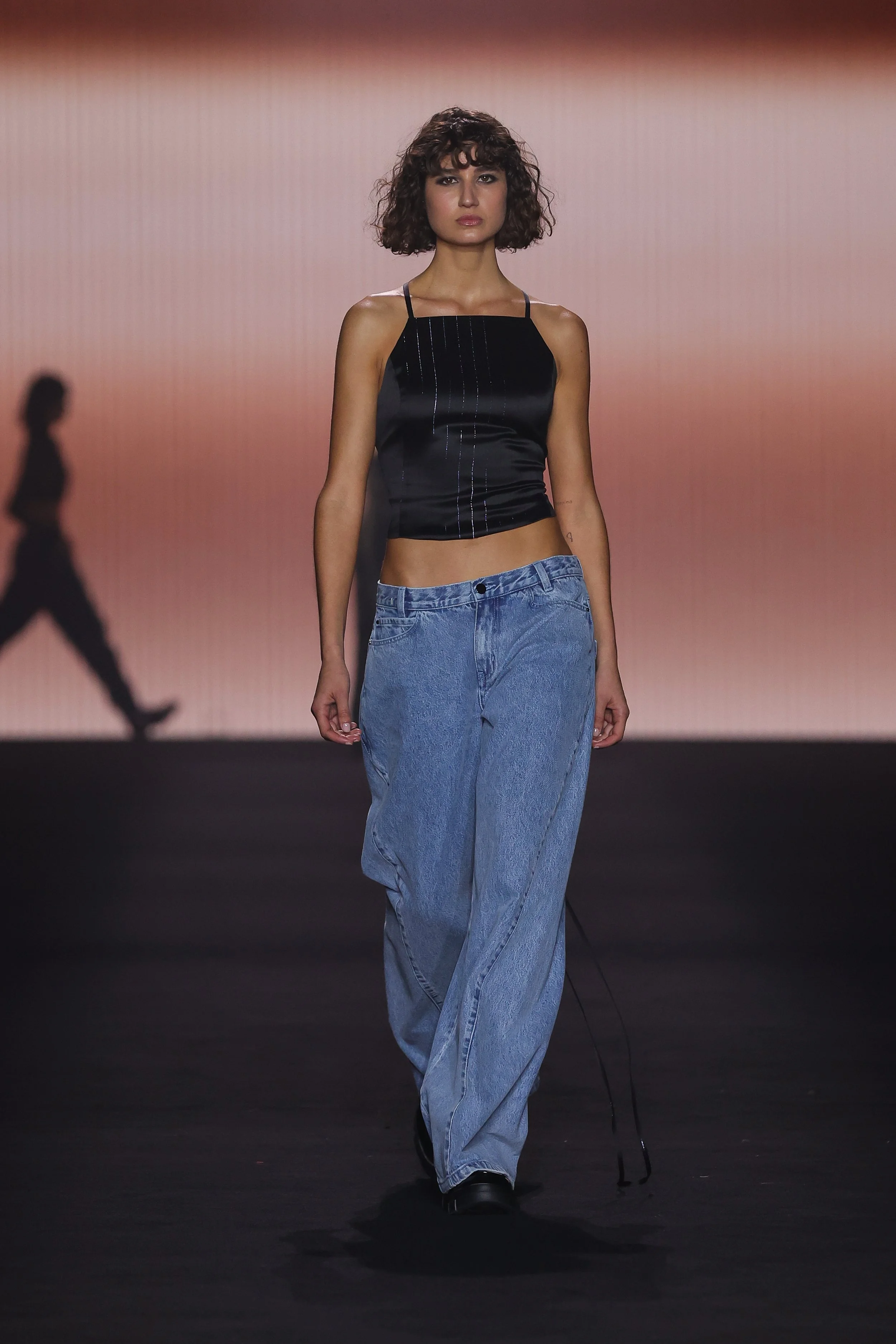 Show 01 prefaces a new evolution of Cue with cool indifference to traditional dress codes. Tailoring is relaxed and designed to fall off the body. Microscopic minis push the limits with attitude, while silk styles float through the collection.